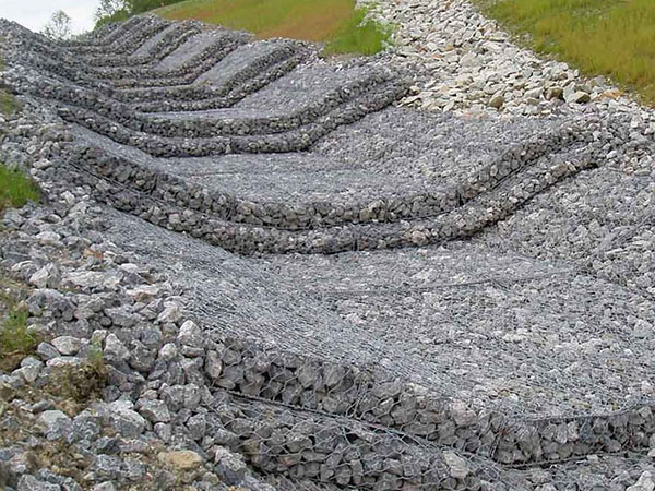 雷諾護墊也叫石籠護墊,格賓護墊,是指由機編雙絞合六邊形金屬網面構成的厚度遠小於長度和寬度的墊形工程構件。雷諾護墊中裝入塊石等填充料後連接成一體,成爲主要用於水利堤防、岸坡 、海曼等的防沖刷結構,具有柔性、對地基适應性的優點。