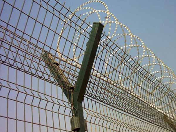 機場護欄網又稱作機場隔離栅“Y型防禦護網”,是由V型支架立柱,加強型焊接片網,防盜連接件和熱鍍鋅刀片刺網組成強度和防禦性很高。近年來,被廣泛應用在機場,軍事基地等高場所。